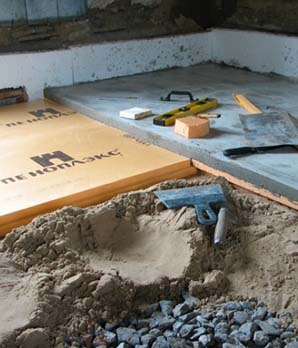 В зависимости от выбранного вида теплого пола и от финишного покрытия в комнате, специалисты подбирают необходимый материал для утепления основы. Относительно недорогой и качественный материал – экструдированный пенополистирол. Укладка производится без зазоров, стыки отдельных элементов дополнительно изолируются.