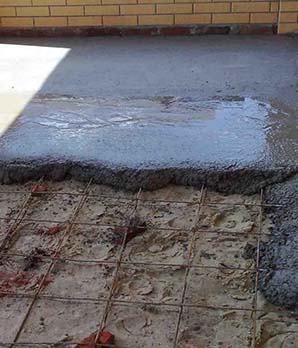 - Наиболее бюджетный вид заливки напольной поверхности – бетонная либо цементно-песчаная смесь. При использовании данных материалов сухие компоненты разбавляются довольно большими объемами воды. Также допускают добавление специальных вяжущих элементов в раствор, например жидкое стекло либо клей ПВА.